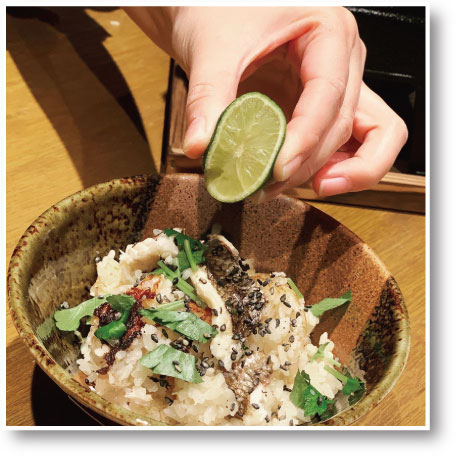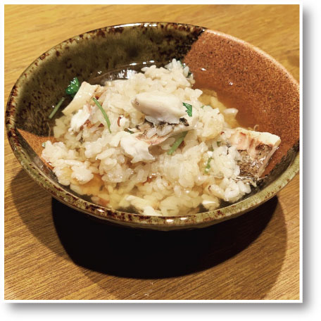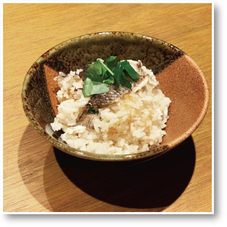 まずはそのまま、鯛の旨味とお出汁の深み、三つ葉の香りと共に、釜めしの旨味を味わえます。